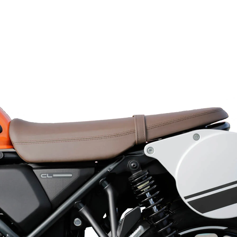 Благодаря увеличенному слою наполнителя сиденье обеспечивает высокий уровень комфорта даже в длительных поездках, снижая нагрузку на колени и спину. Коричневый цвет гармонично подчёркивает scrambler-стилистику Honda CL500, сочетая практичность с классическими дизайнерскими акцентами.