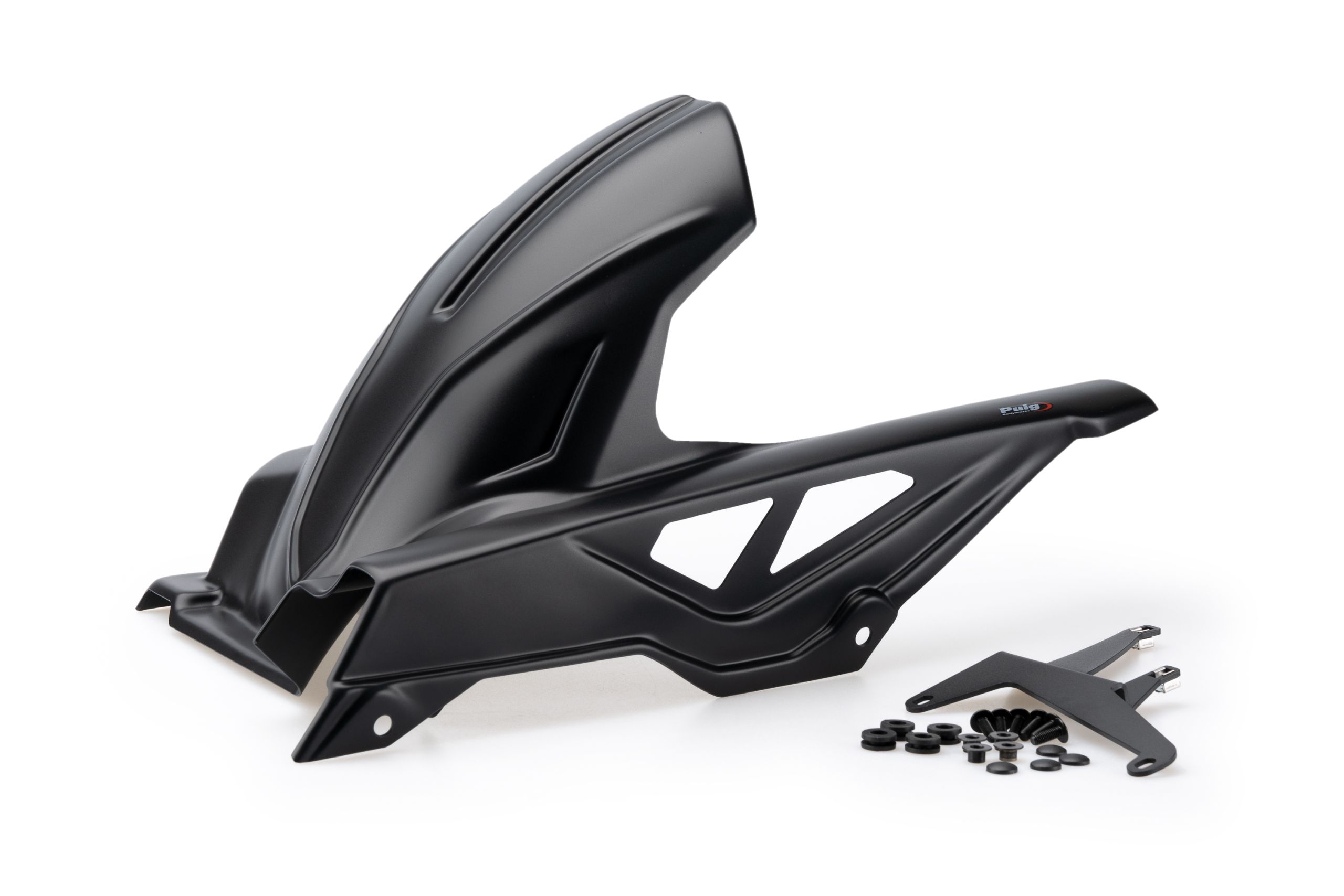 Бризковик виготовлений з ударостійкого ABS-пластику з високими аеродинамічними характеристиками та є ідеальним рішенням для закриття однієї з відкритих зон мотоцикла. Він ефективно захищає задню частину мотоцикла, амортизатор, арку колеса, а також ноги пасажира. Це дозволяє уникнути бризок води та бруду, а також ударів каміння і дрібних предметів, підвищуючи безпеку та зберігаючи елементи мотоцикла в хорошому стані. Крім того, конструкція містить тонкий захисний кожух ланцюга, який захищає ланцюг і допомагає зберігати його змащеним. Окрім захисної функції, Puig приділив особливу увагу дизайну, який підкреслює стиль і характер техніки.